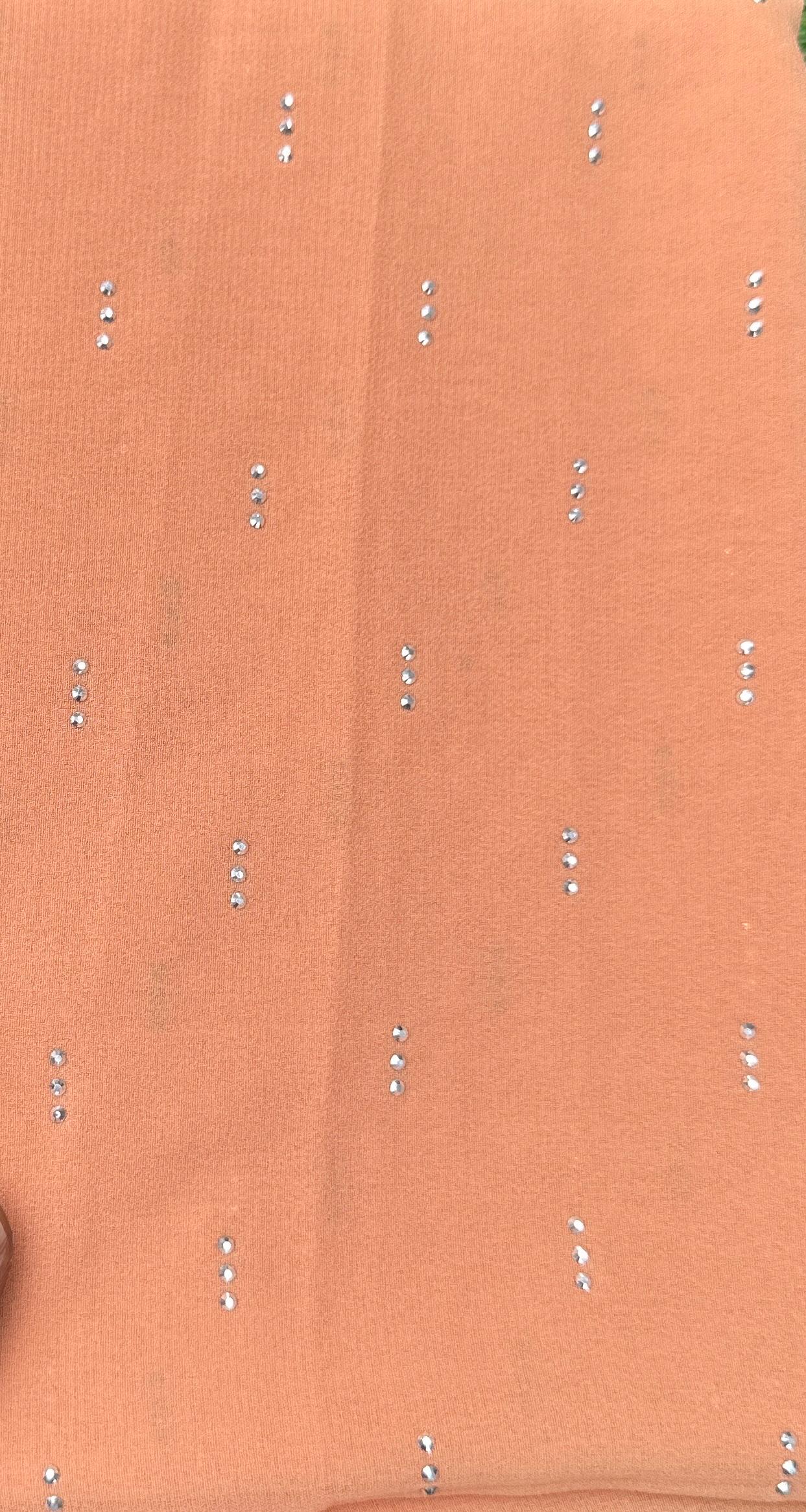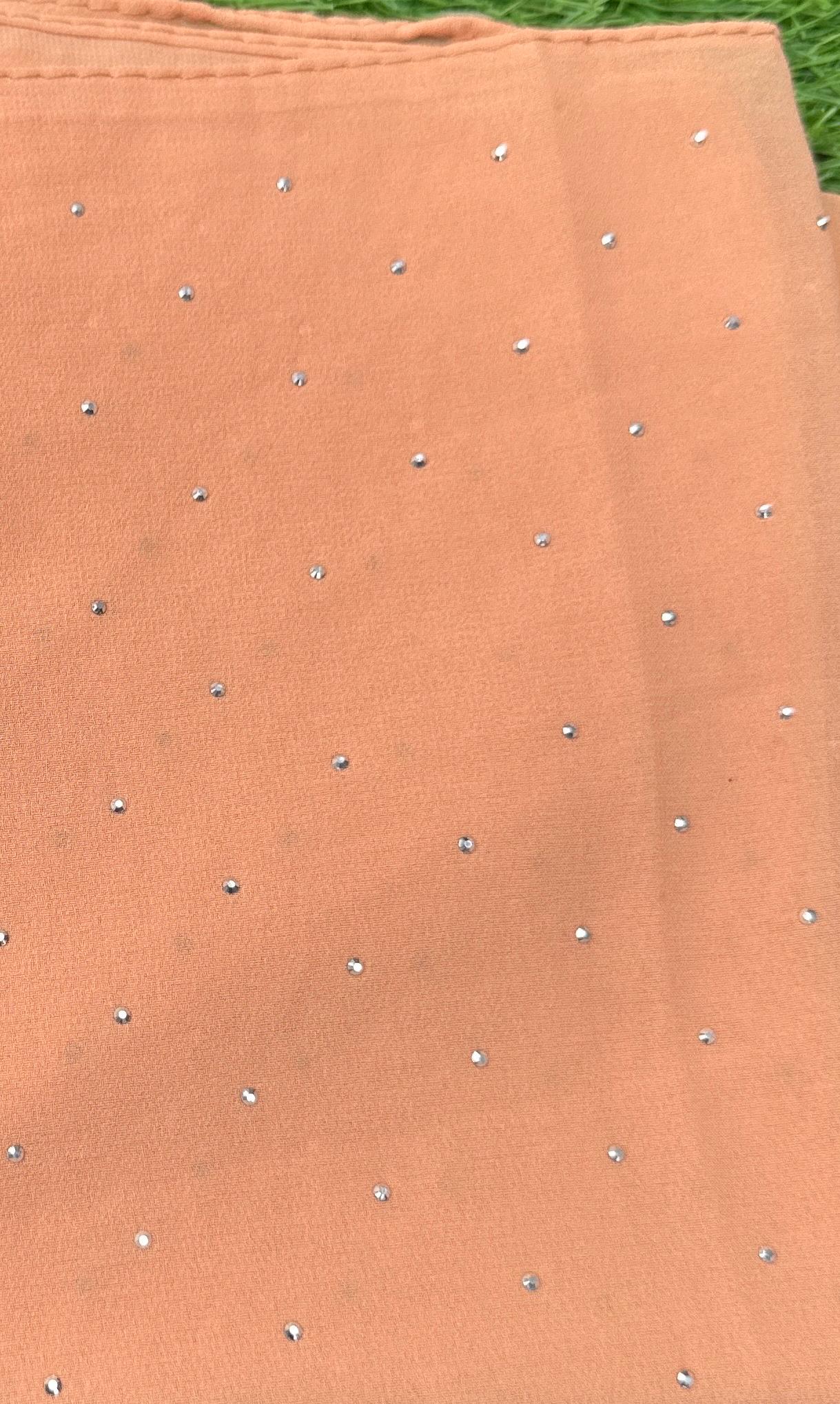 Premium Georgette Chiffon with Rhinestones: Soft, smooth, and stylish.